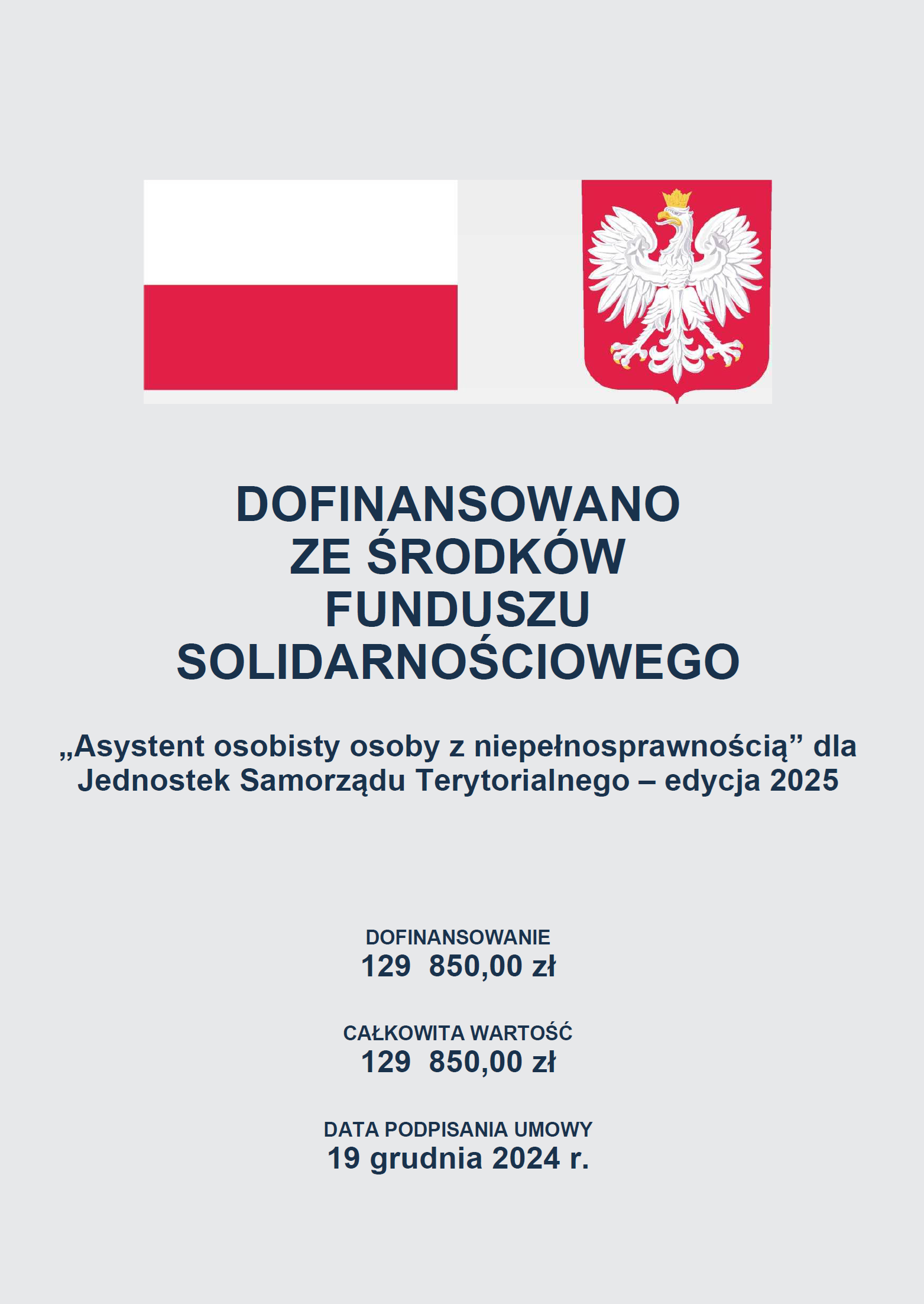 Centrum Usług Społecznych w Wojcieszkowie informuje, że Gmina Wojcieszków otrzymała dofinansowanie w kwocie 129 850,00 zł na realizację Programu „Asystent osobisty osoby z niepełnosprawnością” dla Jednostek Samorządu Terytorialnego – edycja 2025.